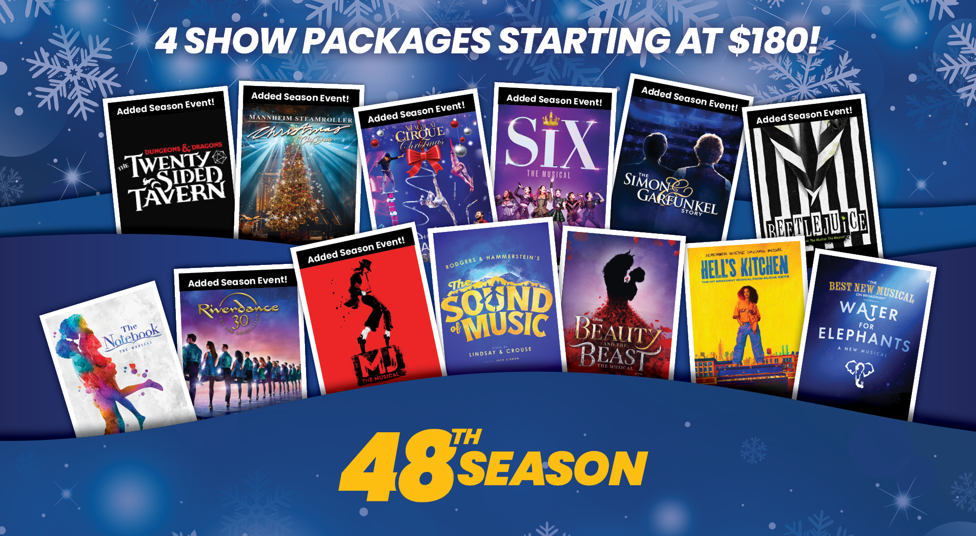 Swap any one of your Season Ticket Package shows with an Added Season Event*.(*Available for most shows. You can Swap into any Added Season Event. SWAPS end 2 weeks prior to the opening night performance.)